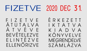 Önfestékező kész dátumbélyegző MAGYAR SZAVAKKAL, gyakran használt fix irodai kifejezésekkel.